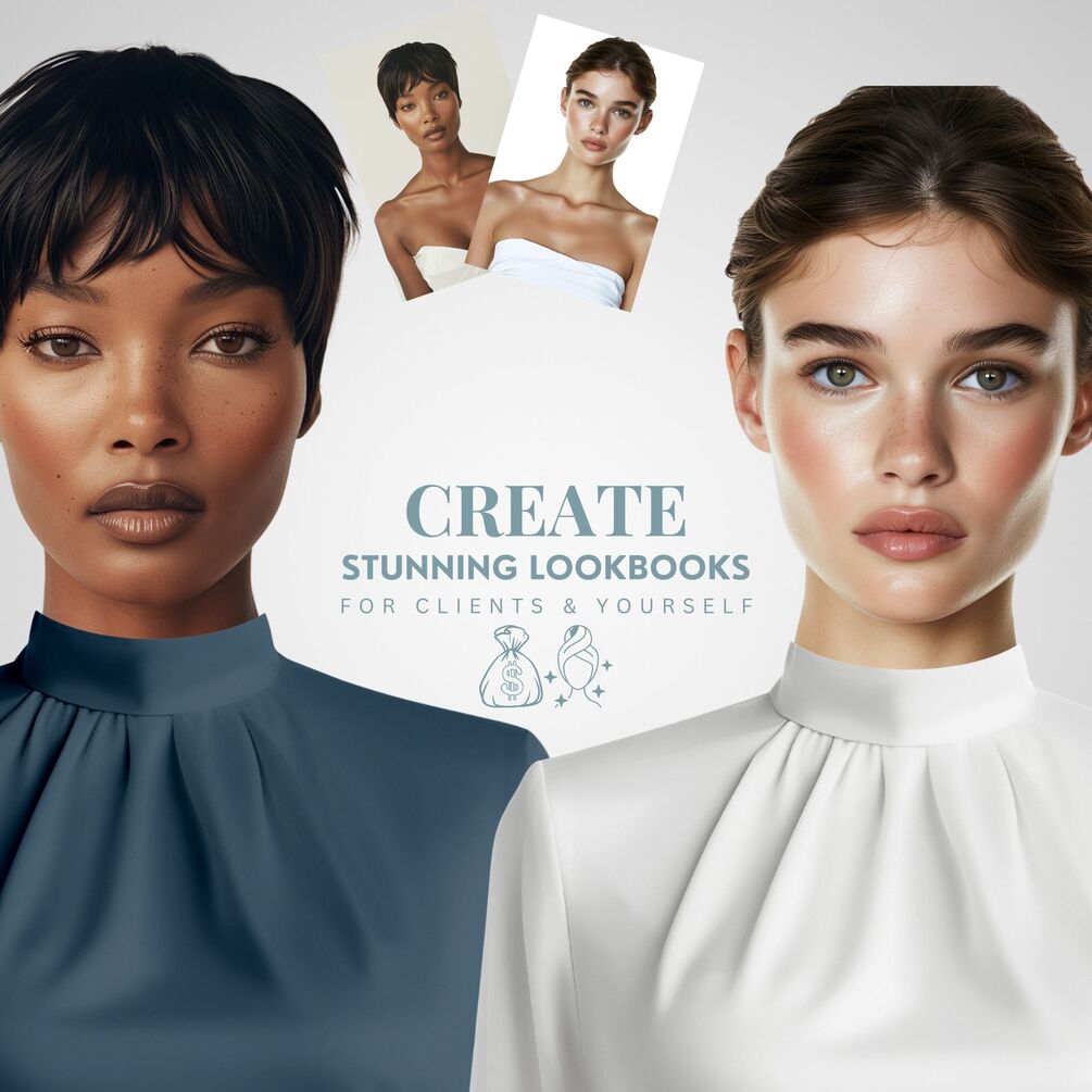 This is a brilliant and elegant digital tool for visualizing various fashion looks, either for yourself or for your client. Elevate your services by using my unique Fashion Tools. Welcome to the Fitting Room N10, High Neck Silk Blouse, universally flattering, mostly Classic + Dramatic + Romantic + Gamine.